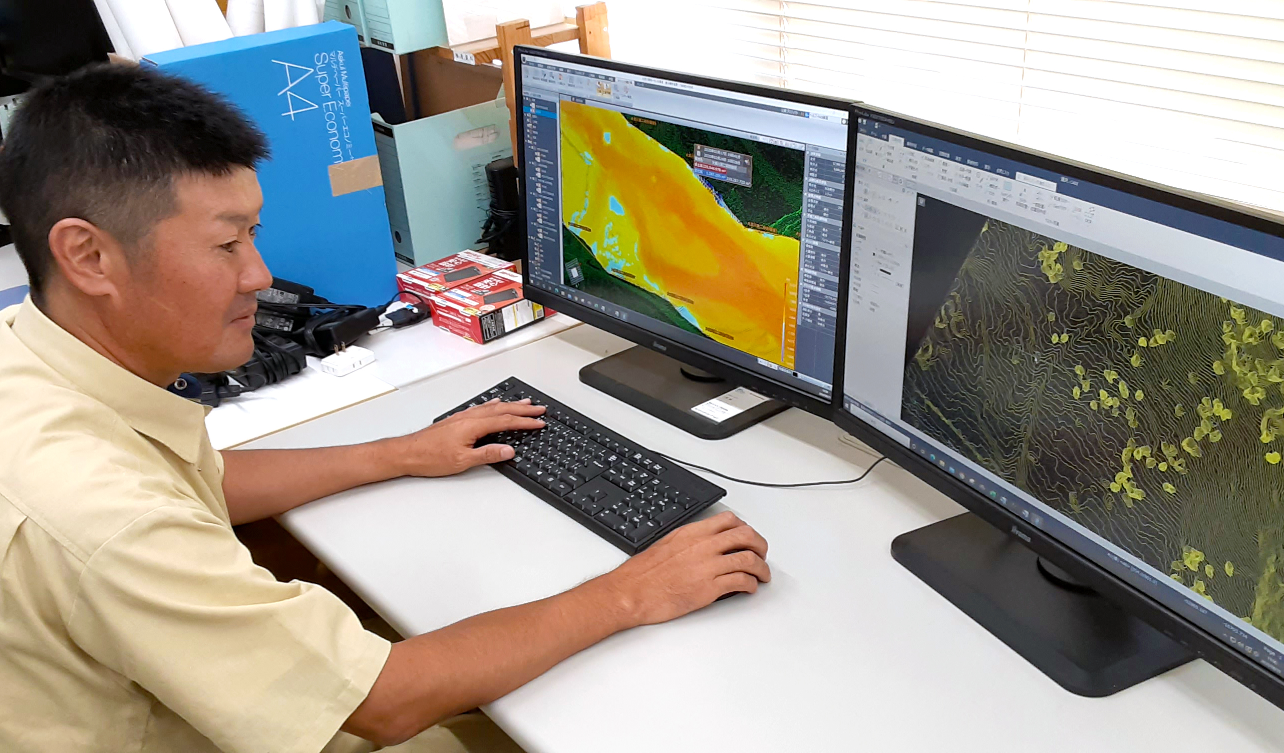 パイロットは私の他にも2人いますが、3次元系のソフトは主に私が使っています。皆に普及させていくには、まず私が使いこなさないと……。その意味で、今回の案件は私にとっても非常に勉強になりました。福井コンピュータの方にも「ここはどうやったら上手くできる?」とか、ずいぶんサポートしてもらいました(笑)。そうやってTREND-POINTの機能を今まで以上に幅広く活用しなければ、できなかったかもしれません。これまで自分がやってきた点群データの編集や解析ノウハウだけでなく、全く新しい知識も学ぶことができたと感じています。