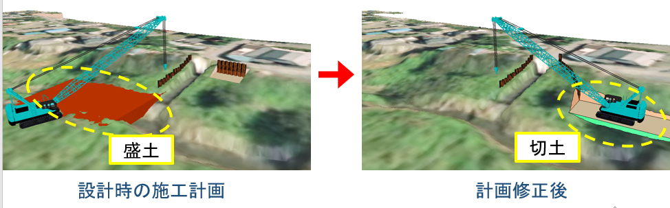 はい。点群処理にTREND-POINTを、3Dモデルの制作にTREND-COREを使っています。従来は、点群データに航空写真を5mメッシュで貼り付けて見せていましたが、今回は3Dモデルを使うことで起伏も視覚的に表現されて分かりやすく、平坦地造成の検討など効率的にできました。現場では作業前に各ステップの完成形を3Dで確認することで、作業員も含めた情報共有もスムーズだったと聞いています。