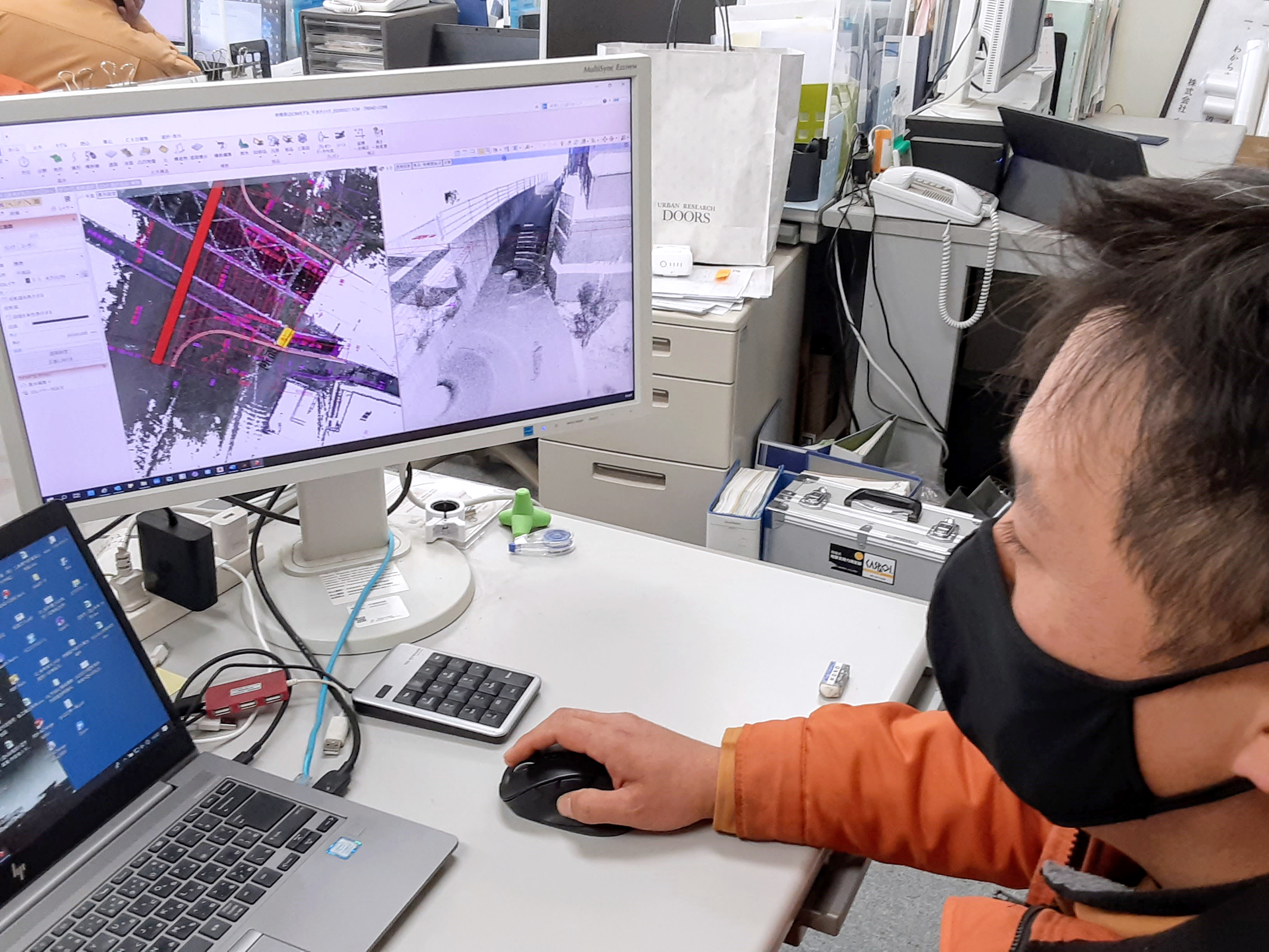 私は現場でTREND-POINTを使う機会が多かったのですが、点群データを処理して目に見える形にできるというのは本当に強力で……たとえば設計上の問題への対応で発注者側との協議が難航し、1年余りも保留状態になっていた箇所があったんですが、そこでこの問題箇所を見える化することで即理解いただけ、次のステップへ進めました。こういう場面で使えたのは、非常に良かったと思いますね。