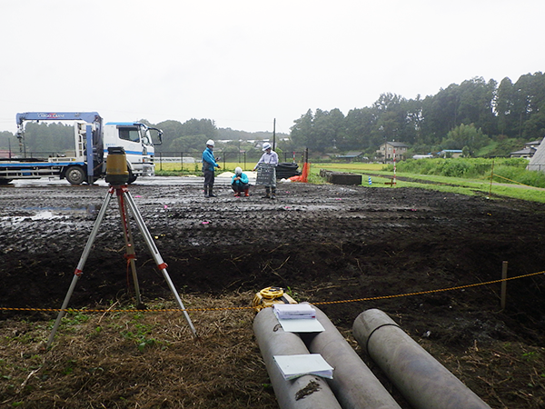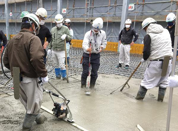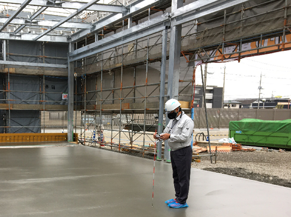 たとえば根切りにおいては、職人さんに掘ってもらう位置を示すため地面にアウトラインを引かなければなりません。通常はトランシットを使って線を描きますが、これを3次元座標データを使ってやろうと考えました。床面積800㎡ほどの現場で通常なら2日以上かかりますが、新入社員と2人でFIELD-TERRACEを使ったら3時間で終わりました。他にも鉄骨建て入れの精度管理やコンクリート床の精度管理等々でも成果を上げましたね。特に後者はお客様からも「非常に不陸が無くて素晴らしい出来です!」とお讃めの言葉をいただいたほどです。