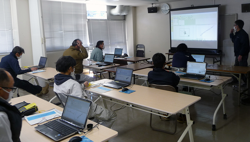 「ICTの今後の展開において3次元化は重要なポイントとなり、これに取り組んでいくならば、そして、建設現場の生産性向上と言う観点からも、3D点群データの活用が喫緊の課題となります。こうした展開を見据えて導入したのが、TREND-POINTなのです」。そう語る天野氏によれば、導入数は総計10セットで、技術管理課はもちろん県土整備部の各出先の建設事務所に各1台ずつ配備されました。そして、すぐに基本操作研修も行われました。講師には福井コンピュータの担当者を招聘し、実際にTREND-POINTを配備した出先機関等に呼びかけて参加を募り、この6月に実施されました。当日は全出先機関から総計34名の職員が受講したほか、天野氏自身も受講者として研修に参加。約半日、点群の基礎を学び、TREND-POINTの基本操作を体験しました。