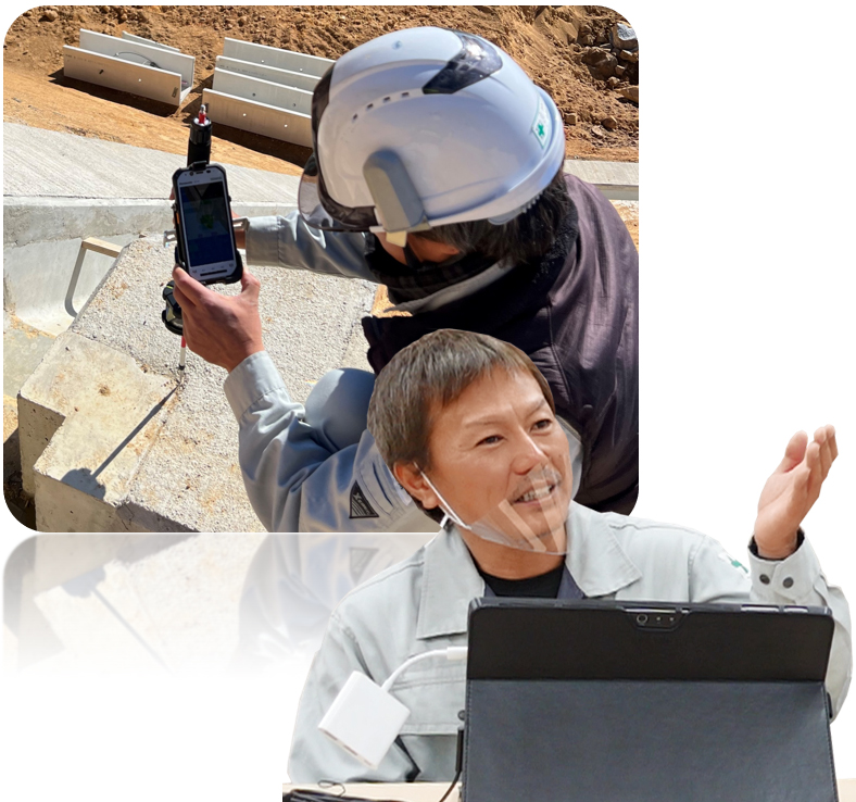 3Dモデルの作成時には、MC/MG用の設計データも用意しており、土工については下請けさんにMC/MG機を貸し出してワンマンで作業してもらっています。さらなる3Dモデルの活用のため、半年前に「FIELD-TERRACE」を導入し、 MC/MG土工の補助、測設、出来形などに活用しました。丁張を一つも掛けずに工事が完了できるようになり、かなり効率が上がりました。3Dの現場活用は協力会社さんにも好評ですよ!