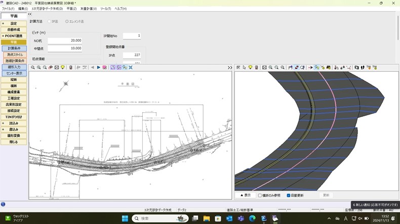 まだ始めたばかりで、先日初めて県工事の現場で、技術者さんと一緒に測量をしたりした中で出たデータを使って3次元データを作りました。まだ重機で使うまでには至りませんが、現地で測量の時に使ってもらっています。CADを初めて使ったので、部長に教えてもらいながら作りました。