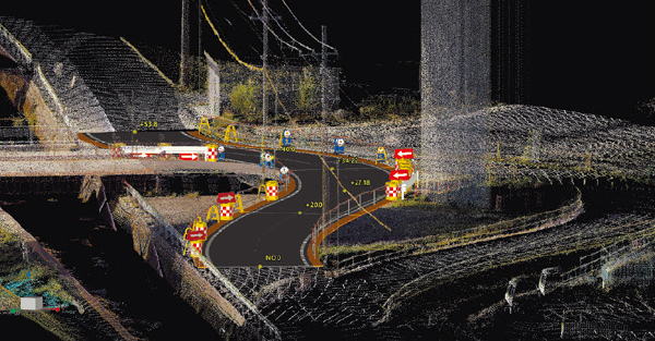 本体工事の起工測量で3Dレーザースキャナーを使ったのですが、たまたまこの市道部分まで取れていたのです。取る予定のない箇所だったんですが(笑)。そこでこの点群データを生かせないか──と福井コンピュータに相談を持ちかけてみたら、「TREND-POINTとTREND-COREでできます!」と言われ、挑戦することにしました。