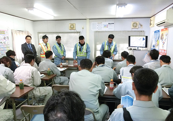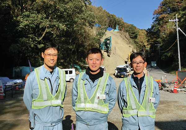 一般県道三原本郷線道路改良工事(大西工区)現場を担当する山陽建設の皆さん