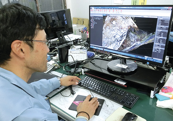 公共と民間とを問わず、条件さえ揃えば「3次元でやりたい」と思います。つい先日もある民間の駐車場の造成工事でトータルステーションを使って計測し、3次元データを活用しました。この現場も山がある所を削って進入道を作る工事で、そういう現場では正確に数量を拾うのも分かりやすい図面を作るのも難しく、なかなか完成形をイメージし辛いものです。しかし、3次元を使えば正確なイメージも簡単に作り出せるし、いろいろな方向から目で見て確認できます。それを皆で共有できるのですから、現場のメリットの大きさは計り知れません。今ではどの現場でも率先して使うようにしています(笑)。