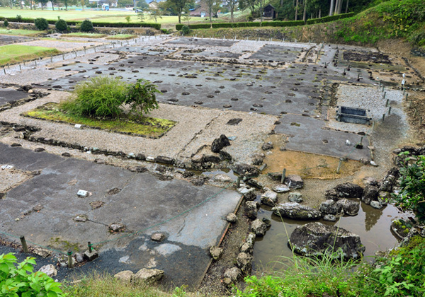 文化財関連の事例を一つご紹介しましょう。「一乗谷朝倉氏遺跡」は戦国大名の越前朝倉氏が築いた戦国城下町の遺跡で、278haもの範囲が特別史跡に指定保存されています。当社ではレーザー計測による遺跡の点群データを用いた映像を作成しました。この映像は資料館で放映されていますが、点群ベースの映像なので大型モニタで見ると眼がチカチカし、寄りの絵では抜けてしまう問題がありました。そこで現在、この点群データを元にCG映像を作り、遺跡の「現在」と「過去」を比較するCGムービーの制作を進めています。