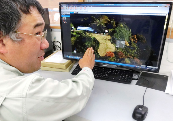 今回のi-Construction対応もそうですが、常に業界の最新動向、最新技術の流れに対応していくスタンスで、機器、システム類もすぐ導入してもらえる環境にあります。ドローンやTREND-POINTも1年前に導入し、i-Conに関する講習会にも参加してきました。i-Conの実案件はこれからですが、いつでもできるよう予行演習を兼ねていろいろ工夫しながら公共民間業務で使っています。従来の3次元測量とドローンとTREND-POINTによる3D点群データを用いた測量の結果との比較検証なども行っていますよ。