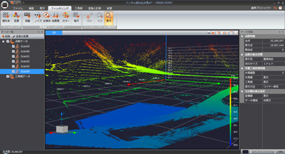 「TREND-POINTには、自動的にノイズを取り除いてくれる様々なフィルタリング機能が用意されているので、作業はとても効率的です」(杉浦課長)。この機能は、3Dレーザースキャナーで計測した点群データにも有効です。例えば、雑草が生い茂る堤防や斜面を3Dレーザースキャナーで計測すると、レーザー光のほとんどは地表面に届かず、雑草の表面形状を測定していることになってしまいます。