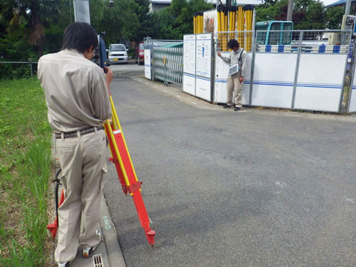 計画でスラブを張り出したいんだけど、そこをカットするので、1回撤去してもう一度付けなおすという工事で、予定のラインまで100mくらいの区間を50cmピッチで細かく逆打ちしてくれ、と依頼されたんです。まさに空中になるので、その時点では位置を出せません。そこで1度現況を取って事務所でまとめ、それから計算しようと考えました。でもお客様が「そんなに待てない」とおっしゃるので進退窮まってたら、社長が「電子平板ならできるよ」とその場で現況を取り、お客様が出したラインと重ねて逆打ちをしていったんです。驚いたのはもちろん、使い方次第でいろいろ使えることにも気づきました。で、こりゃ使わなきゃもったいない、と(笑)。