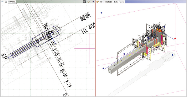 構造図と3Dモデル確認を縦断方向と横断方向から行う