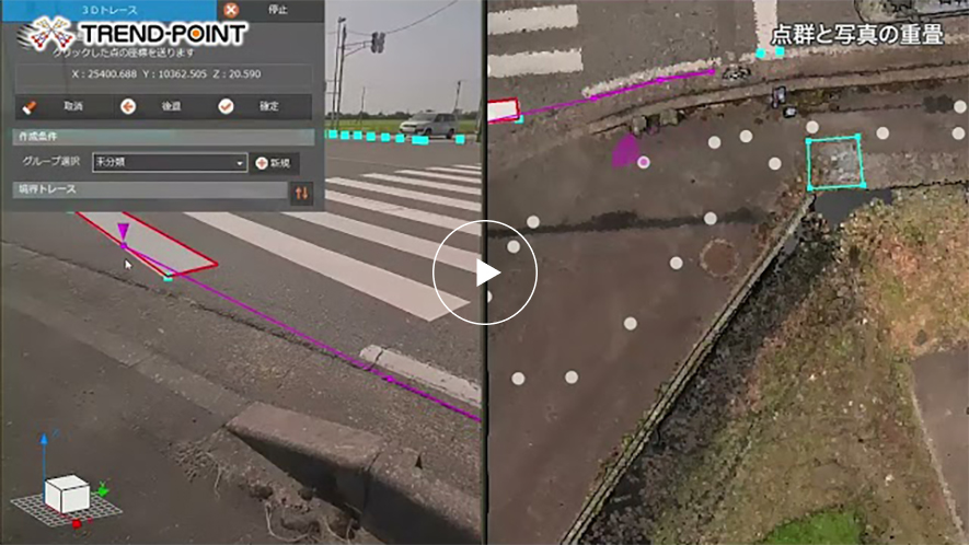 点群と点群の間を補完する表示機能を新たに搭載。拡大した時に見えにくかった、境界やブロックの角などが鮮明になり、精度の高いトレース作業が実現します。