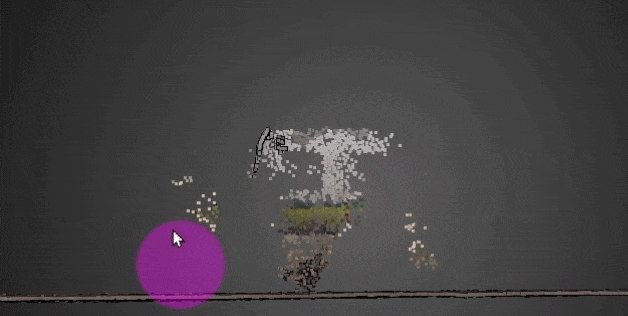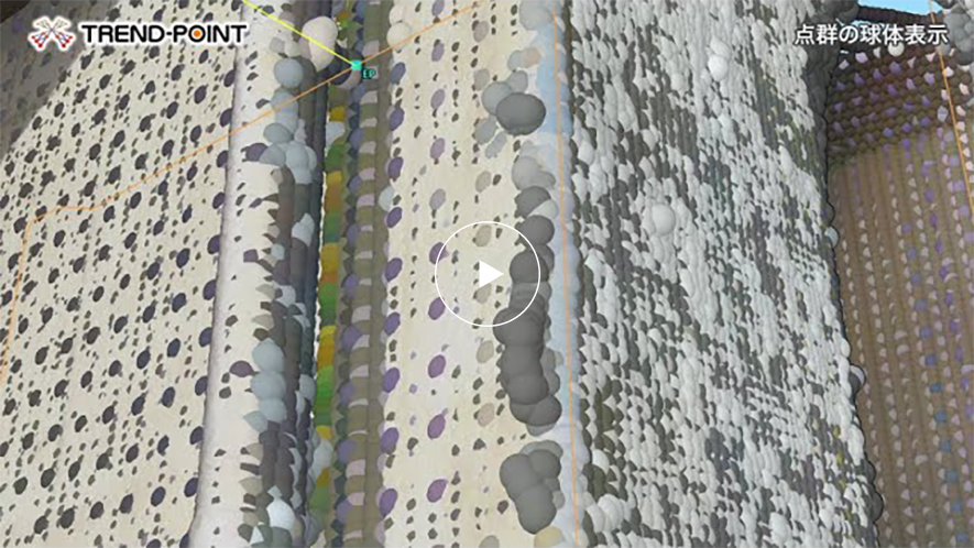 通常点群は小さなドットで表示されているため、対象物を拡大表示するほど点群間の空白部分が広がり、形状や色彩の把握が難しくなります。これを補うため、点群を中心に球体として表現する機能を追加し、拡大時の視認性を向上します。