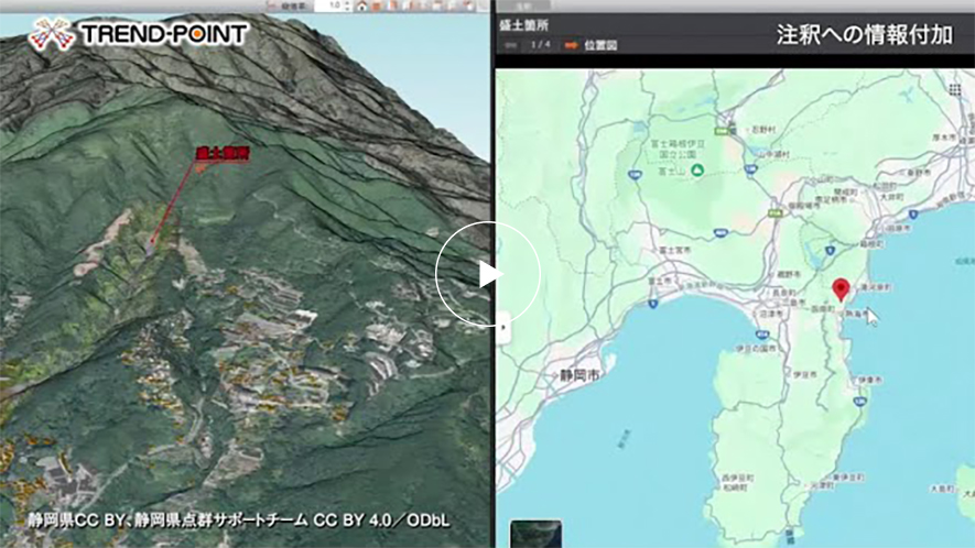 視認性が向上する新たな点群表示機能に加え、点群上に追記できる注釈に写真や動画(360°パノラマ含む)、PDFファイルを登録できる機能を追加しました。