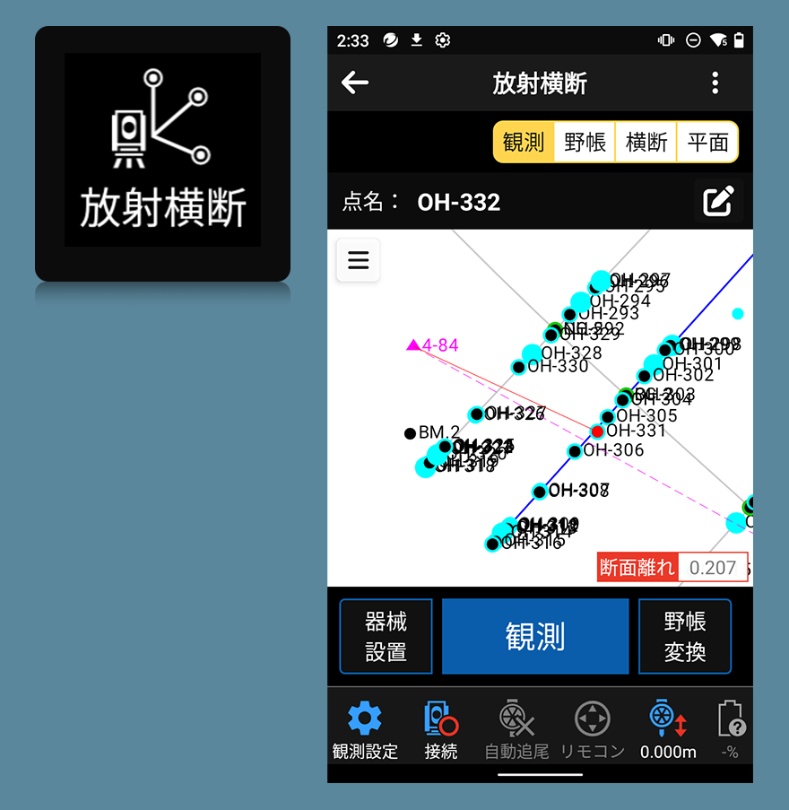 ※縦断観測/横断観測は測量セットにてご利用いただけます。