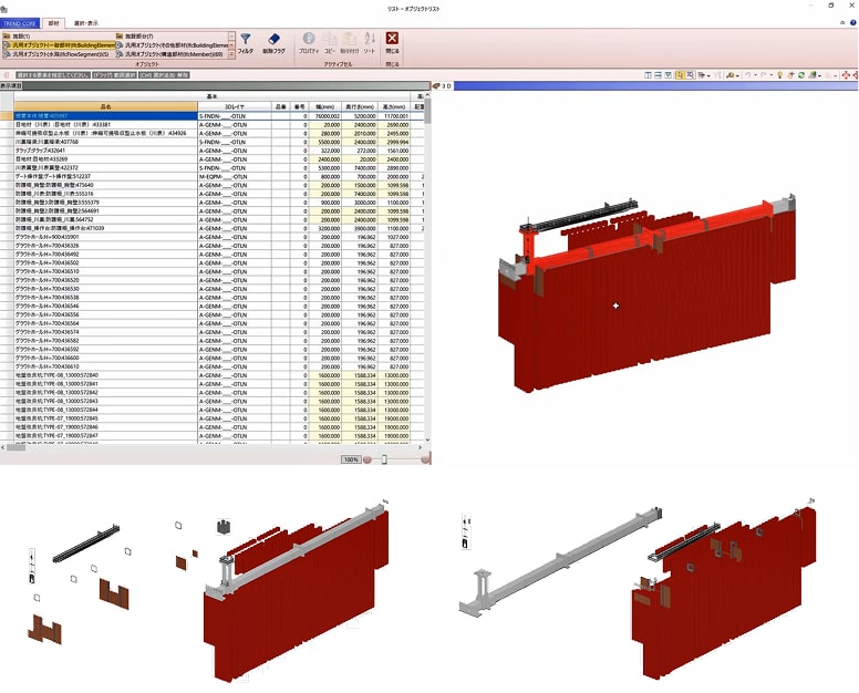 3Dモデルを工程毎に分割したり、分割した単位での体積や型枠面積などの数量算出も簡単に行えます。