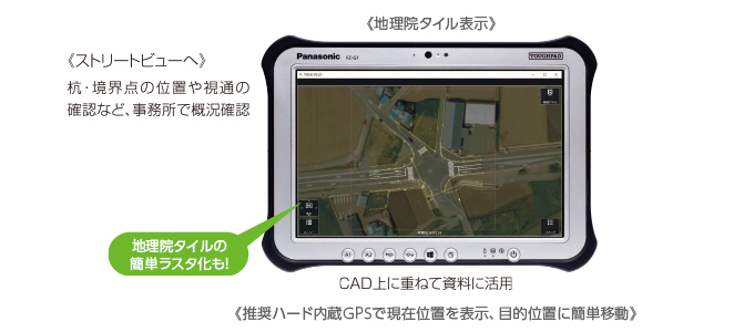 地理院タイルの表示やGoogleストリートビューへの表示で、現場イメージをとらえやすく!