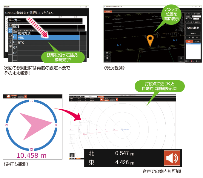 現況観測や逆打ち観測、任意点計測をGNSSでも観測できます!