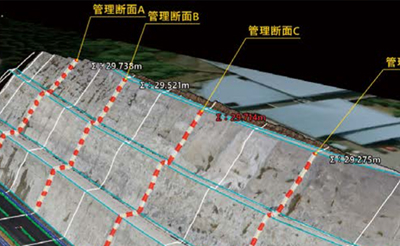圃場の点群データから、排水計画や、効率的な水路配置の検討に役立ちます。スマート農業にも活用されています。