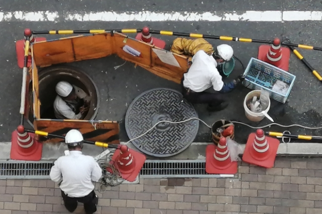 下水道管など、人が入れない場所に飛ばせるドローンなど使用し、管内のひび割れや変形などの検査が行えます。