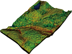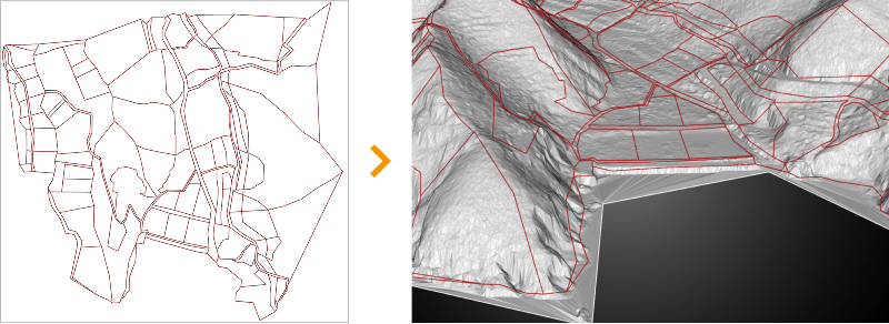 リモートセンシングデータを用いて、傾斜区分図、微地形図、林相識別図、樹高分布図などが作成できます。また、山村部における境界(筆界)の推定など、地籍調査業務での活用が可能です。