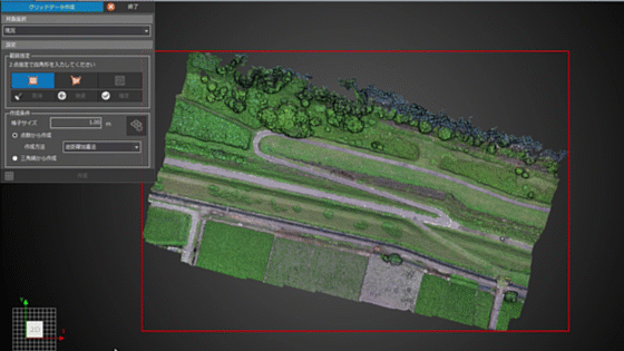 i-Constructionの点密度に準拠した三角網の作成や、位置情報付きのオルソ画像の貼り付けによる鮮明な地形の表現が可能です。