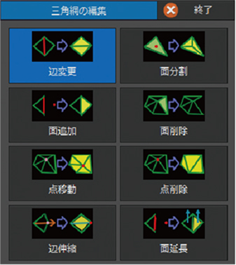 また、作成した三角網の削除や面の延長や追加、ブレークラインの設置、オーバーハング、3D形状の三角網作成など、優れた編集機能を備えています。