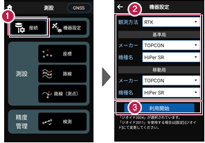 GNSS機器は電源を入れ、接続可能な状態にしておいてください。