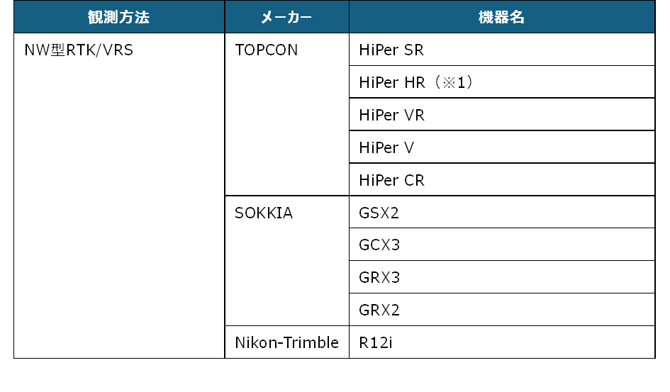 ■ 対応している観測方法は「NW型RTK/VRS」です