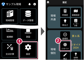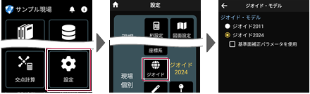 ※既存現場、PKZなど取込時は「ジオイド2011」、新規現場、XFDから現場作成時は「ジオイド2024」が選択されています。