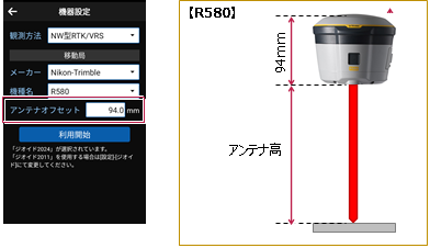 Nikon-Trimble 「R580」のアンテナオフセットについて
