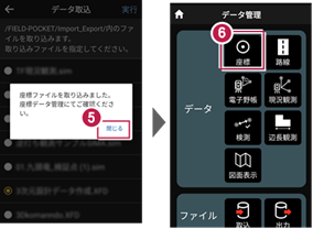 5 取り込みが完了すると、確認のメッセージが表示されますので「閉じる」をタップします。