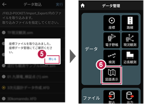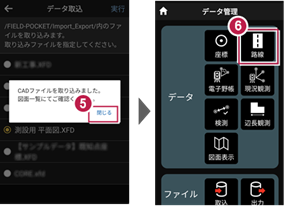 6 [データ]の[図面表示]をタップします。