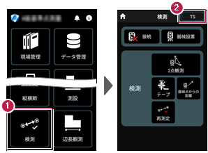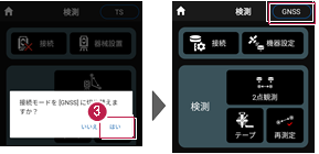観測画面の右上の[GNSS]をタップして、TSモードに切り替えます。