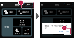 GNSS機器は電源を入れ、接続可能な状態にしておいてください。