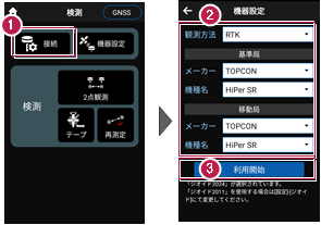 詳しくは「GNSS」-「現況観測」-「観測設定をおこなう」を参照してください。