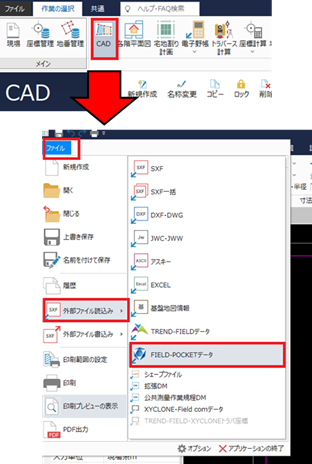 FIELD-POCKETから各種データを出力します。