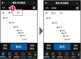 2 観測が完了すると、次の点名「G531」が表示されます。