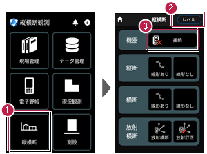 縦断観測で対応している測量機は “レベル” と “TS” です。