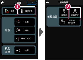 詳しくは 「現況観測」の「任意点に器械を設置する(後方交会法)」を参照してください。