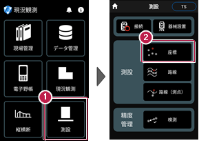 設置位置を指定した後[偏角]をタップすると、計測点方向に器械が自動回転します。