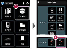 2 データ管理画面の[ファイル]の[出力]をタップします。