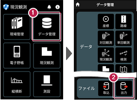 2 データ管理画面の[ファイル]の[出力]をタップします。