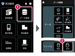 2 データ管理画面の[ファイル]の[出力]をタップします。