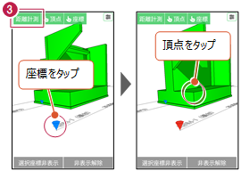 [距離計測]をタップして、計測する2点(頂点または座標)を選択します。