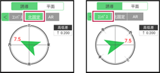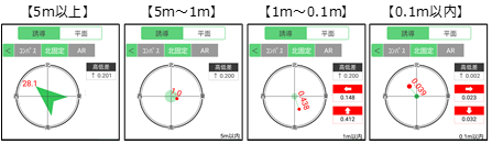 プリズムと設置位置まで距離によって、誘導画面は以下のように切り替わります。