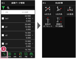 2 座標一覧が表示されます。交点計算に使用する座標を選択します。