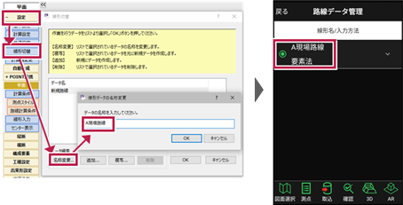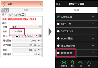 EX-TREND武蔵 3次元設計データ作成の[設定]-[線形切替]のデータ名称が反映されます。