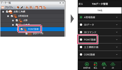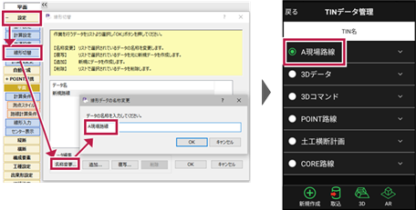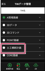 取り込んだTINデータは[設計管理]-[TINデータ]で確認できます。