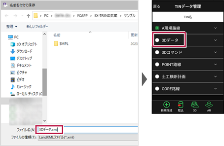 【出力方法:EX-TREND武蔵 3次元設計データ作成の[書込み]-[LandXML]の場合】
